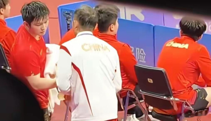等到接下来樊振东下场时,他也立马把毛巾和水拿到他的手上